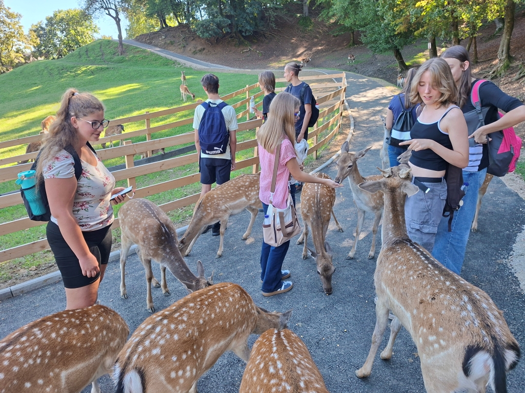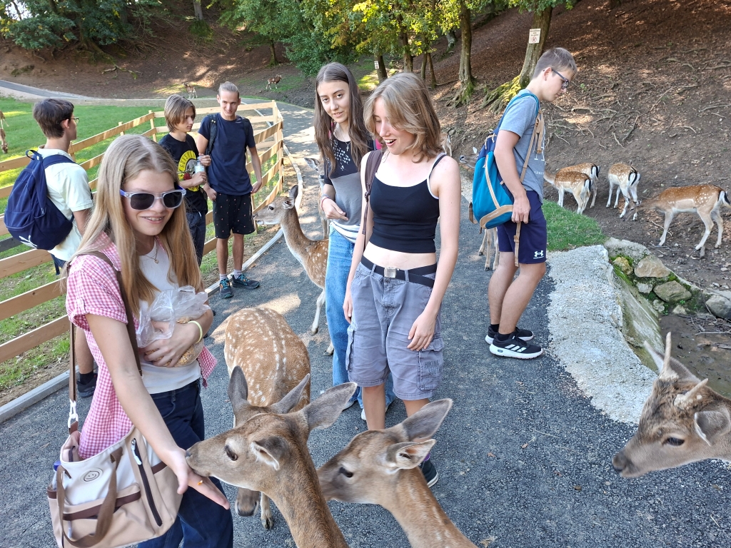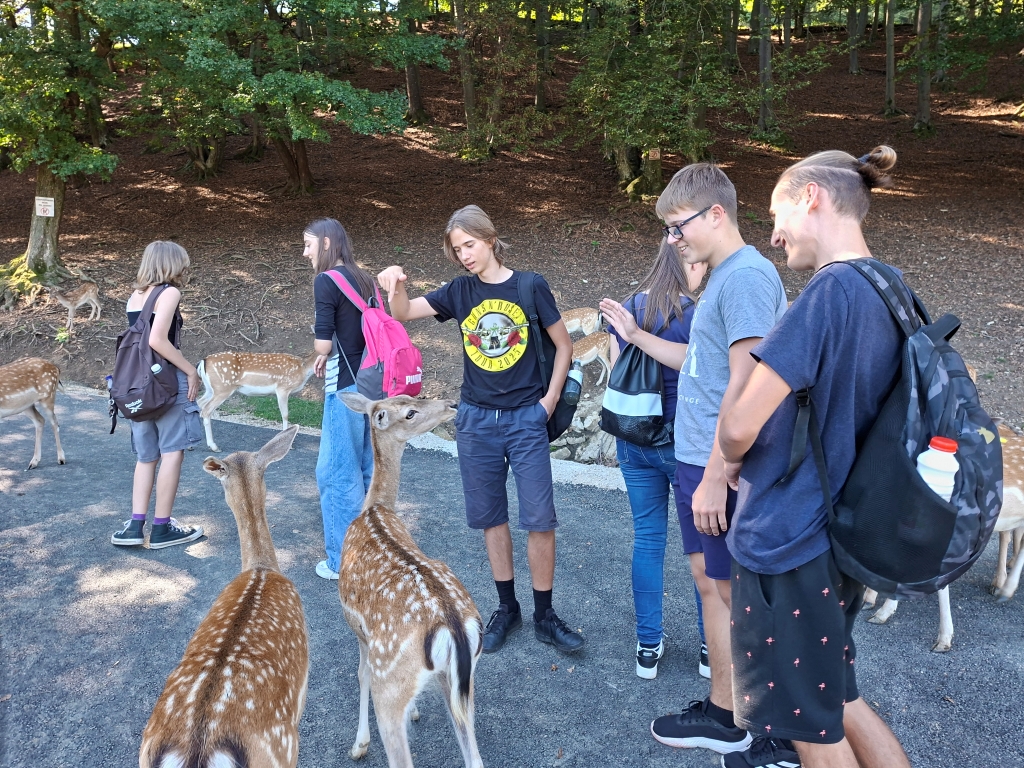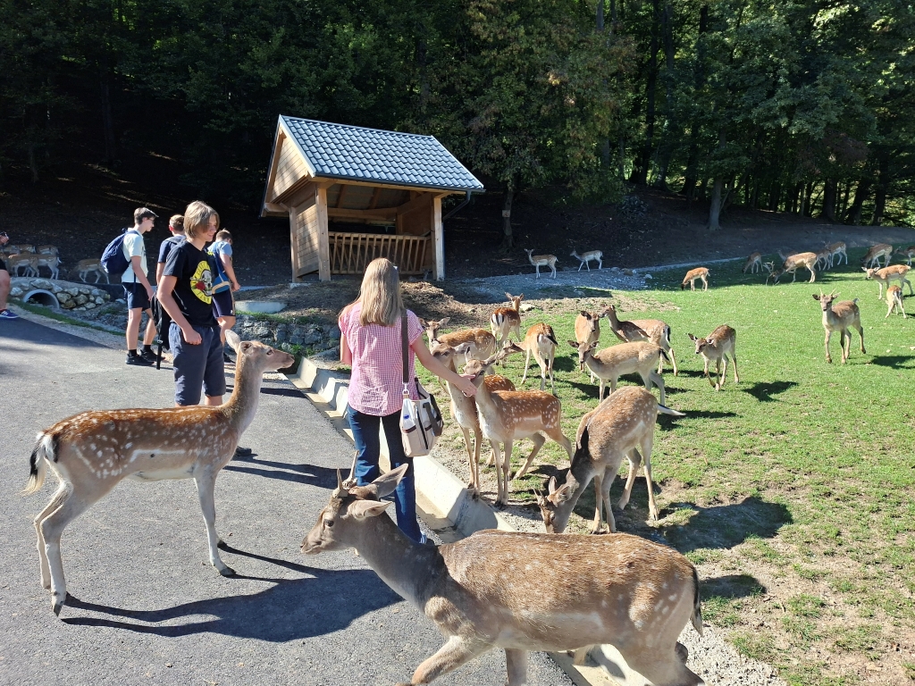 Po ogledu centra smo se odpeljali na Jelenov greben v Olimju, kjer smo uživali v družbi ljubkih srnic in malo bolj nagajivih srnjačkih, ki so jim že zrasli rogeci. Da smo bili v hipu oblegani s strani srn, je poskrbela Ela, ki jim je prinesla priboljšek v obliki koruze.