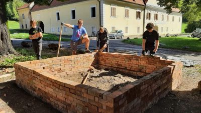 Zunaj laboratorija pa smo z dijaki postavljali dvignjeno gredo iz rdeče opeke. Greda bo namenjena predvsem zasaditvi zdravilnih zelišč, ki jih bomo lahko uporabili pri delu v laboratoriju.