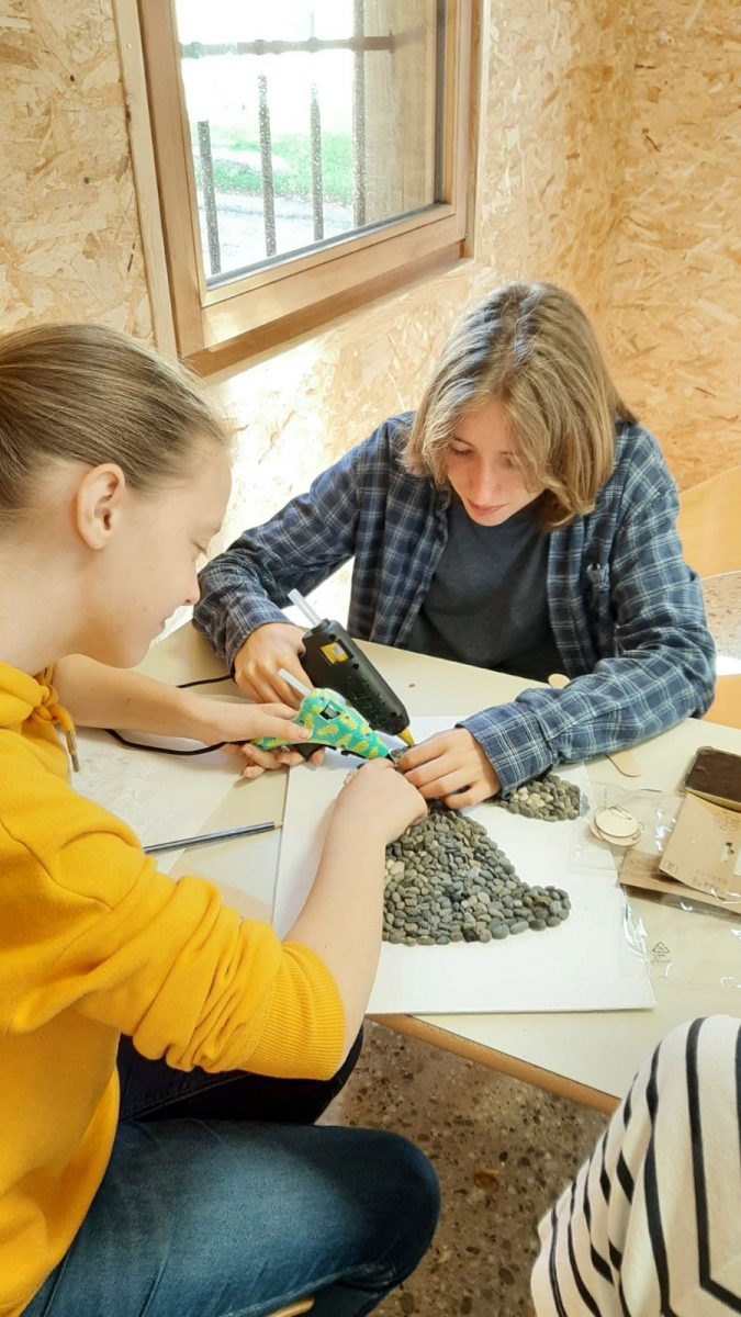 Naravovarstveni krožek je bil razdeljen na dva dela. V prvem delu je potekalo delo v Naravovarstvenem laboratoriju in pred njim, v drugem delu pa smo izvedli strokovno ekskurzijo. Pod mentorstvom Natalije Horvat so dijaki v Naravovarstvenem laboratoriju izdelovali različne slike in promocijske materiale iz naravnih materialov, ki bodo krasile notranjost laboratorija.