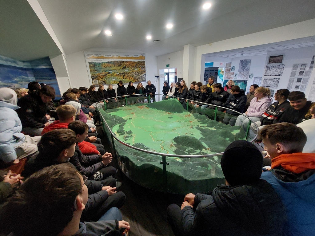 Nato smo se odpravili do Centra za obiskovalce Cerkniškega jezera. Na centru smo si pogledali kratek film, o življenju na jezeru, prepoznavali smo različne živalske in rastlinske vrste. Ogledali smo si tudi razstavo o vidri in meneku, kamninah ter Notranjskemu regijskemu parku.