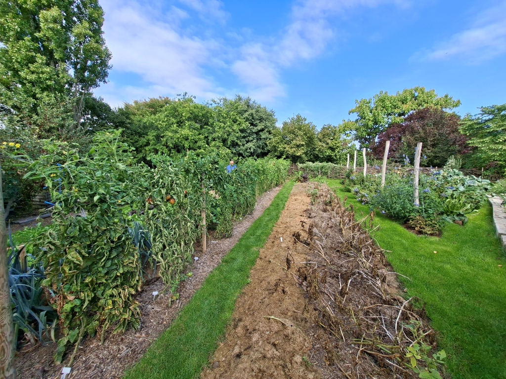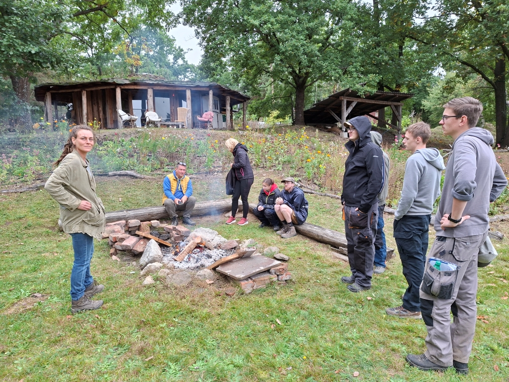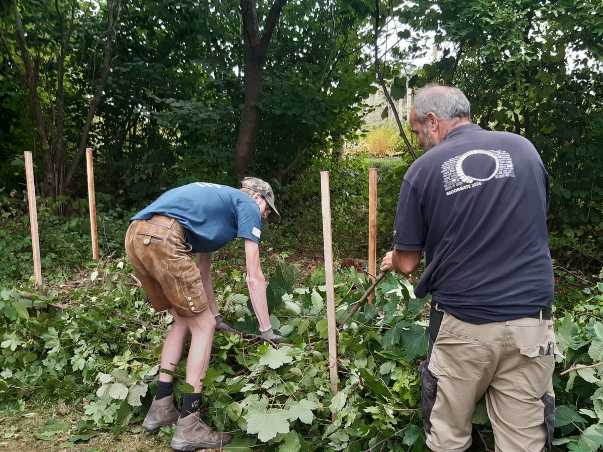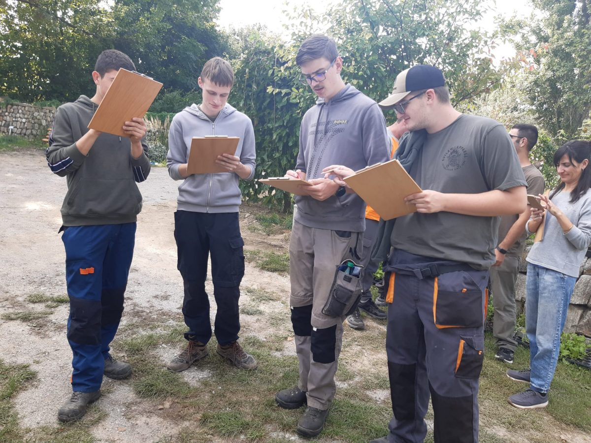 Za tem smo opravili še praktična dela na posestvu šole. V parku je bilo potrebno pokositi travo, porezati in urediti živo mejo, na gredicah z zelenjavo pa je bilo potrebno izkopati krompir, zemljo ponovno pripraviti in zatem posaditi nove rastline. Zadnja postojanka pa je bila izdelava ograje iz organskih materialov, predvsem vej in zelenih delov rastlin.