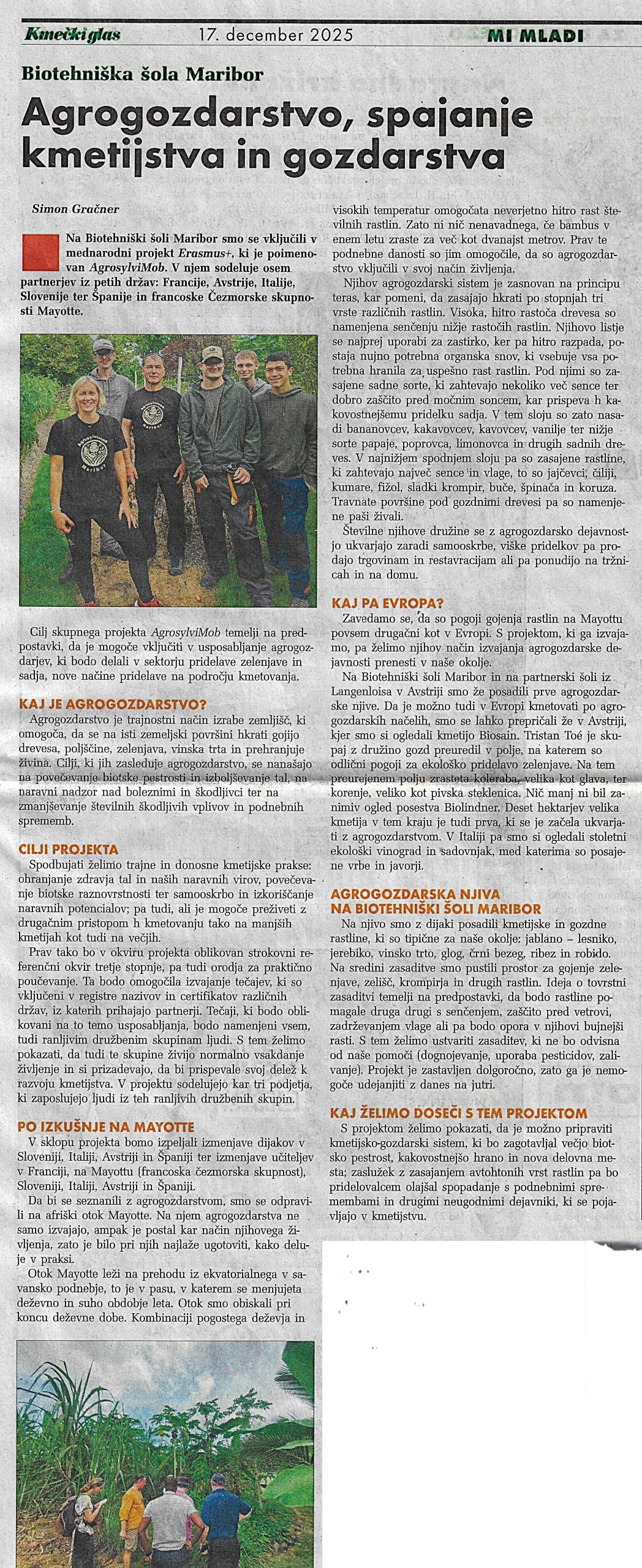 Projekt Agrosylvimob, ki poteka v okviru Erasmus+ ni namenjen samo dijakom in učiteljem, ampak je namenjen vsem, ki želijo spoznati nekaj novega in jih zanima samooskrba. Zato je zelo dobro, da o takšnih projektih poročajo tudi različni mediji.